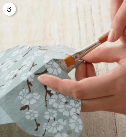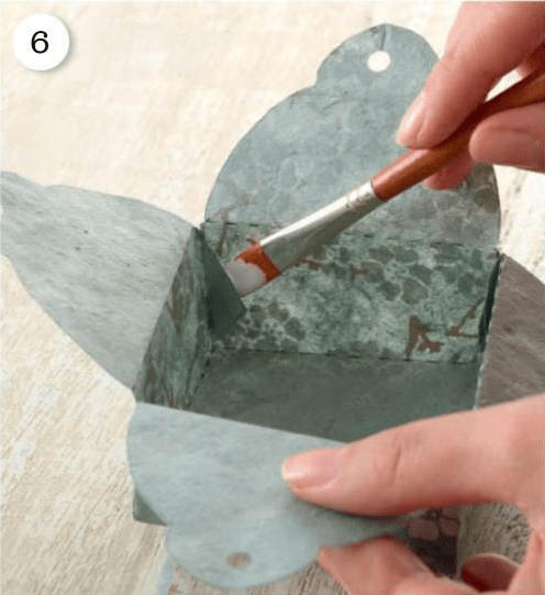 Kutunun kenarlarını içe doğru katlayın, ardından gösterildiği gibi köşe kıvrımlarına yapıştırıcı sürün.